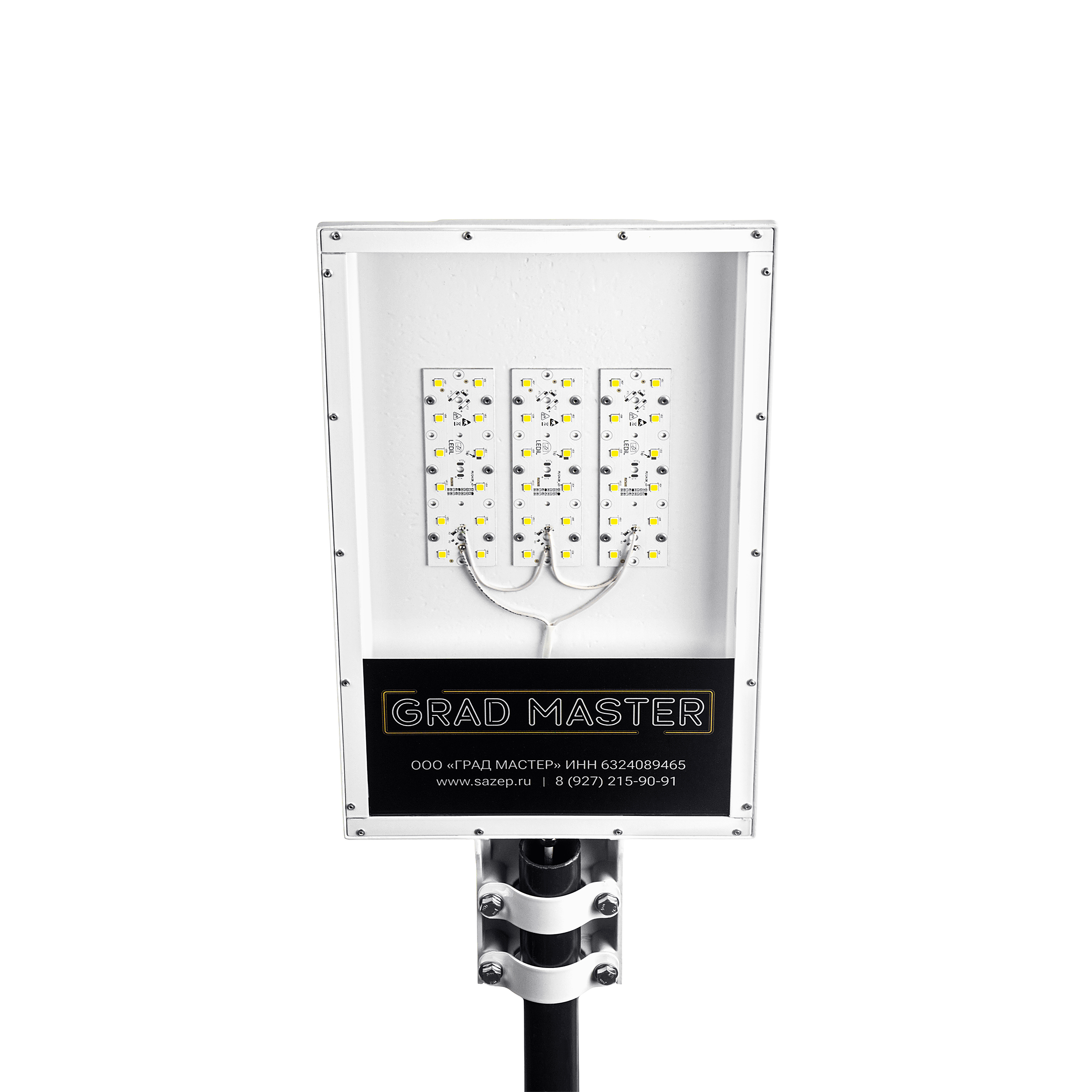 Светильник изготовлен методом литья под высоким давлением из сплава алюминия на Литейном заводе «РосАЛит» по ГОСТ Р МЭК 60598-1 и окрашен белой порошковой краской (RAL9016).